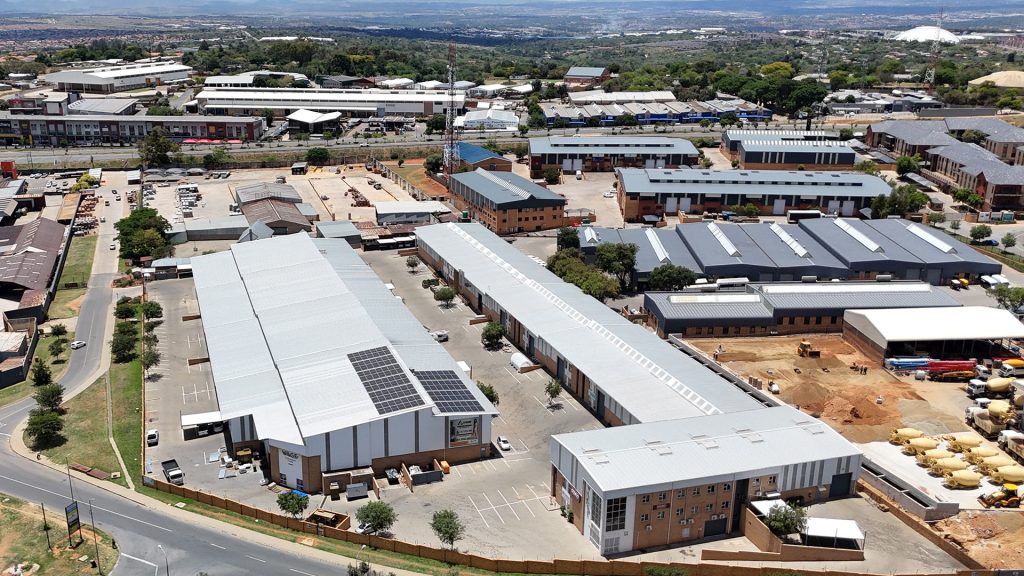 This industrial park in Roodepoort offers 27 secure warehouse units with flexible mezzanine space and highway access.